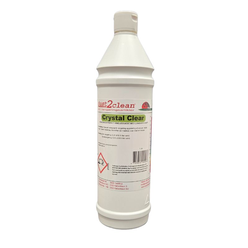 Crystal Clear er et effektivt rengøringsmiddel udviklet til stribefri rengøring af glas, spejle og andre blanke overflader. Produktet fjerner nemt fedt, snavs og fingeraftryk og efterlader en skinnende ren og klar overflade uden rester.
