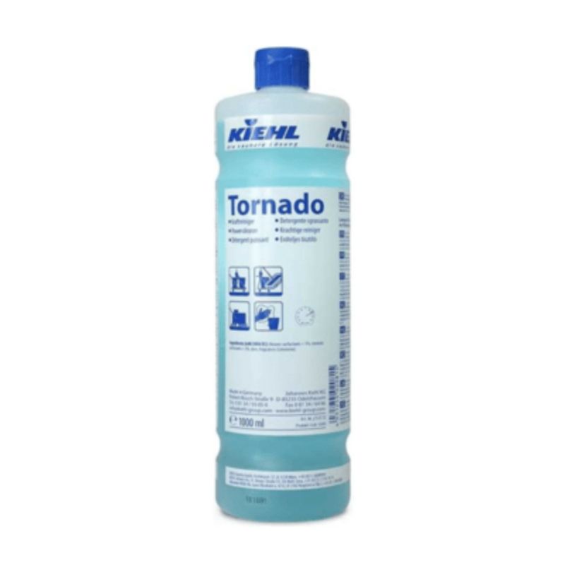 Kiehl Tornado er et effektivt og alsidigt rengøringsmiddel, udviklet til professionel brug, hvor der stilles høje krav til rengøring af fedt, skidt og nikotin. Med sin høje opløsningsevne og lang rækkeevne er produktet ideelt til grundrengøring af overflader og især velegnet til vinduespudsning.