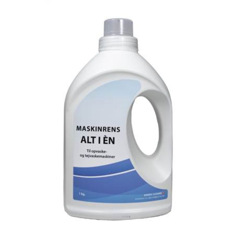 Maskinrens Alt-i Én 1 kg er et flydende, koncentreret rengøringsmiddel udviklet til effektiv tømning og rensning af opvaske- og vaskemaskiner. Produktet fjerner snavs, fedt, kalkaflejringer og dårlig lugt – og efterlader maskinen frisk og klar til brug.