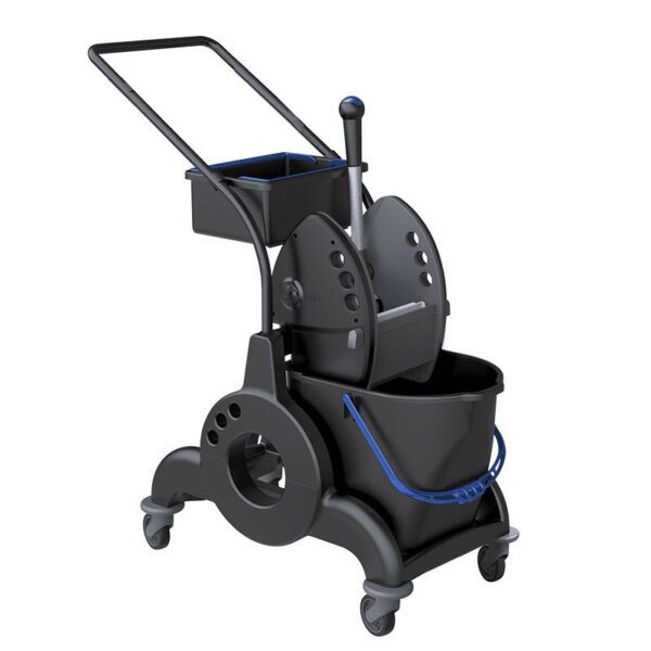 1×15 l handy gulvvaskevogn med et godt og solidt kørehåndtag der gør den nem at bruge. Inklusiv praktisk kurv. Produceret af 13% genbrugsplast, og alle materialer er 100% genanvendelige. Kan presse Wet Mop, drypmop, Fladmop, Speed Mop og andre klapbare mopsystemer. Mål B38 x L60 x H93 cm. Vægt 8,1 kg.
